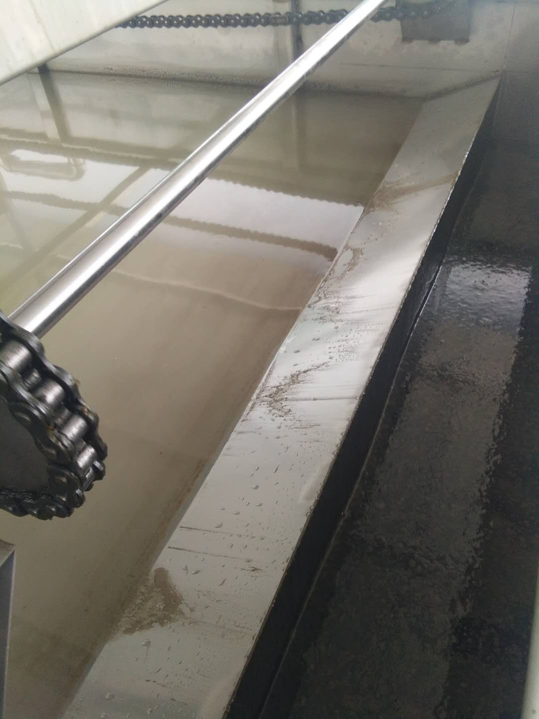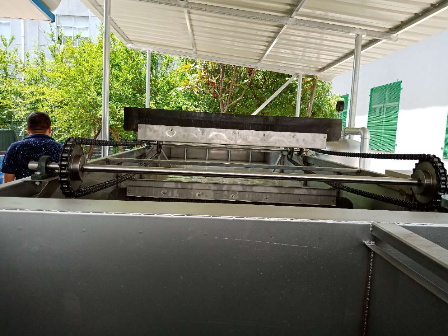 改造方案:增加一臺(tái)氣浮型撇油撇渣機(jī),污水進(jìn)入水體后,首先經(jīng)氣浮設(shè)備產(chǎn)生大量微氣泡,將水體中油脂、雜物上浮至水體表面,再經(jīng)過自動(dòng)撇油撇渣機(jī)刮除掉,這樣解決原來水中除渣、除油不徹底的現(xiàn)狀。
